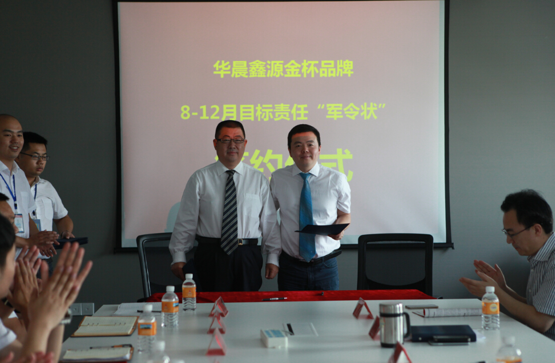 近日,華晨鑫源銷售公司金杯品牌事業(yè)部大區(qū)經(jīng)理競聘上崗暨8-12月目標(biāo)責(zé)任“軍令狀”簽字儀式成功舉辦。