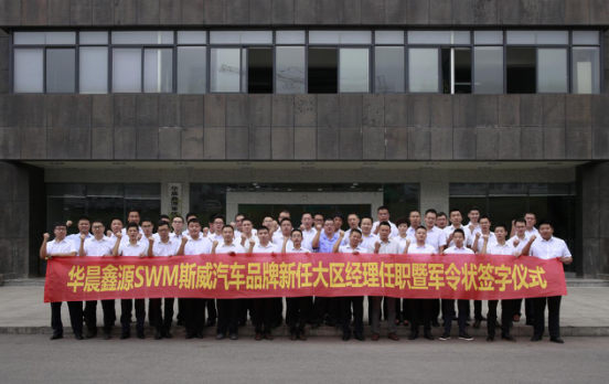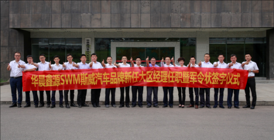 鑫源控股副總裁、華晨鑫源汽車銷售公司總經理張洪巖先生,SWM斯威品牌事業部品牌總監助理白松先生,銷售部、渠道部、市場部等部門負責人以及全國12個大區的大區經理與區域經理參加了此次儀式。