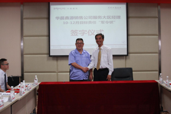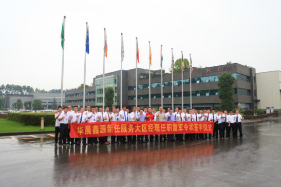 鑫源控股副總裁、華晨鑫源總經(jīng)理謝勇先生,鑫源控股副總裁、華晨鑫源副總經(jīng)理龍健先生,鑫源控股副總裁、華晨鑫源副總經(jīng)理、銷售公司總經(jīng)理張洪巖先生,華晨鑫源銷售公司金杯品牌營銷總監(jiān)蔣波先生,銷售公司SWM斯威品牌營銷總監(jiān)助理白松先生,客戶服務(wù)部部門負責(zé)人以及全國12個服務(wù)大區(qū)經(jīng)理與區(qū)域經(jīng)理參加了此次儀式。