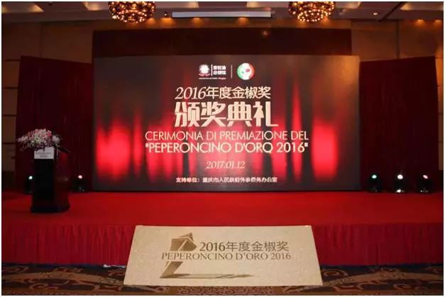 2017年1月12日晚在重慶市洲際酒店舉辦了第三屆情系意大利之秋文化季閉幕式暨2016年度金椒獎頒獎典禮。重慶市旅游局副局長王定國、重慶市人民政府外事僑務辦公室領事處處長范青、領館的各界朋友以及意大利同胞等百余位嘉賓到場,共慶意大利駐重慶總領事館這一年度盛會。