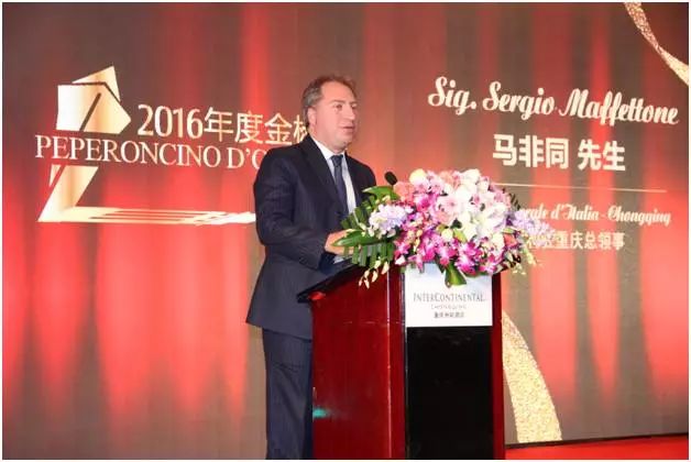 總領事馬非同致辭意大利總領館致力于日復一日地拉近意大利和中國西南地區的距離,不僅是在商業和工業領域加強雙方聯系,也通過開展各個文化活動,旅游項目和推廣意大利語言的學習加深兩國的友誼。金椒獎的設立是為了特別感謝用最大的熱情和專業精神用心推動中意關系發展的朋友們。