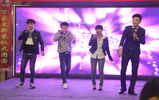 隨著倒計時的鼓聲,團拜會在一首《紅火的日子》中拉開序幕。接下來各個部門帶來的不同形式的精彩節目,為團拜會助興,更展示了鑫源農機人的無盡風采。