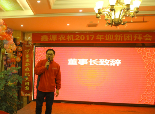 團拜會上, 鑫源農機楊董事長上臺致辭。楊董肯定了公司各部門在16年里所做的貢獻,并對全體員工的辛勤努力表示了感謝對公司繼續發展壯大的期許,楊董的講話飽含深情,令人振奮2017年,鑫源農機全體員工勢必擰成一股繩,以鑫源核心價值觀為準繩,不忘初心,砥礪前行,再上一個新臺階