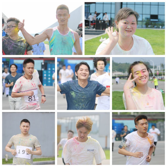 萬事俱備,汽車公司常務(wù)副總鐘秉福一聲令下,正式比賽一觸即發(fā)!五顏六色的彩粉漫天飛灑,剎那間,一幅幅風(fēng)格迥異的彩色圖畫在參賽隊員的服裝上生長,滿是彩粉的頭發(fā)和臉頰鮮活了整個賽道。通過拋灑彩粉,傳達出健康繽紛的生活理念,消除家人們在工作和生活中的誤解和不快,跑出絢爛多彩新生活!