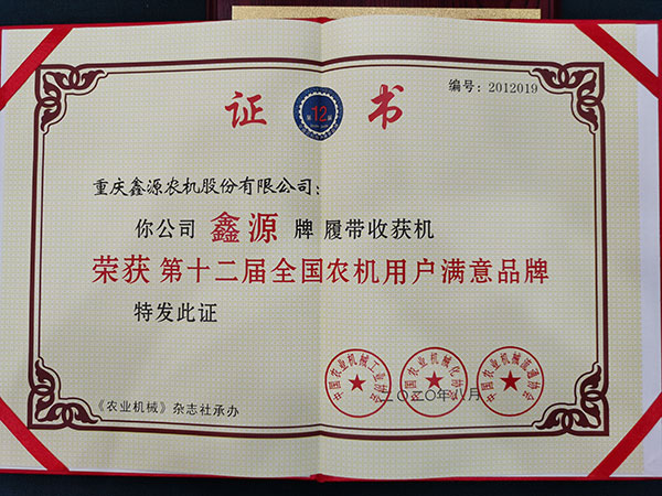 近日,“第十二屆全國農機用戶滿意品牌”揭曉,鑫源農機收割機憑借可靠的性能和優質的服務喜獲榮譽。