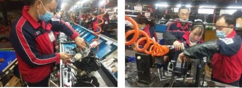 隨著主持人一聲令下比賽正式開始。本次大賽以“時間短、質量高”兩個標準衡量參選隊伍的的綜合實力,因此所有隊伍都爭分奪秒,力爭第一個完成比賽。在各組隊長的帶領下,各組迅速進入狀態。從工具篩選到部件組裝,組員分工明確、流程井然有序,動作標準麻利,目光中都透露出必勝的決心。