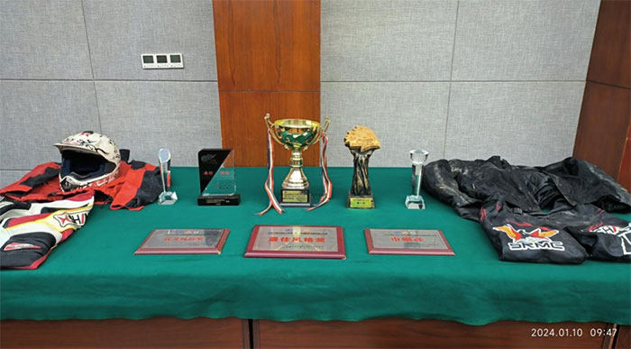 在捐贈儀式上,鑫源國際車隊捐贈了當年的比賽服裝、靴子、以及在中國環(huán)塔拉力賽中獲得的獎杯、獎牌等。在這些賽場榮譽后面,還有許多無私奉獻、團結(jié)協(xié)作,傳播人間真情的故事。